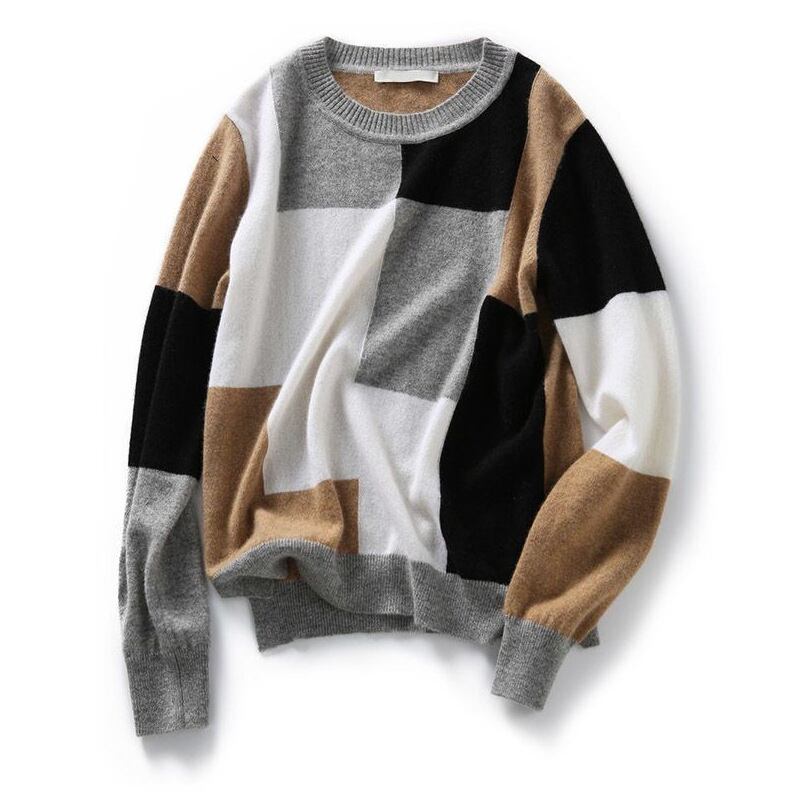 人気上昇中 ラウンドネック ニット 切り替え 配色 厚手 セーター