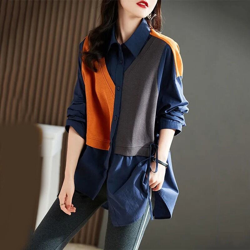 セレブリティ 配色 切り替え シングルブレスト 折襟 大活躍 シャツ